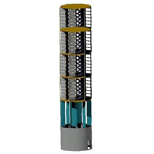 El cuerpo rotativo esta rodeado de unas piezas de forma que bajo el viento una parte del cuerpo rotativo esta tapado al viento y la otra parte esta abierta al viento, no hay otro aerogenerador de eje vertical mas eficiente.