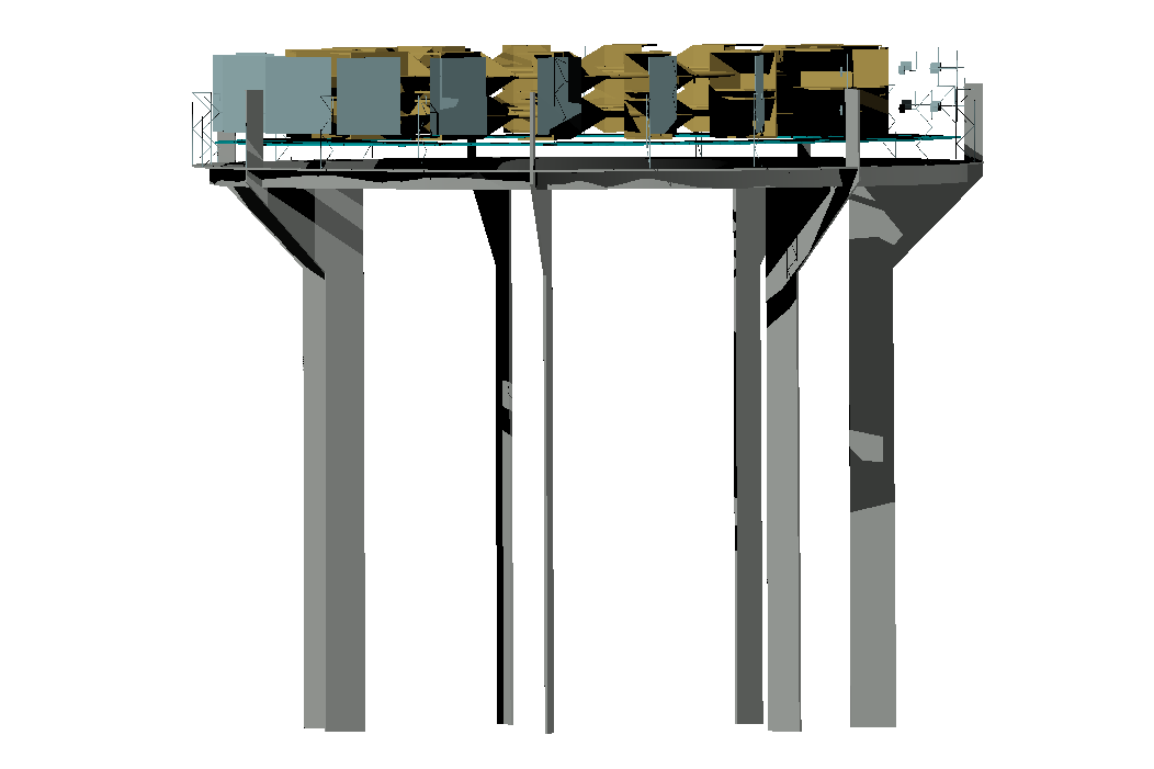 - SE PRODUCE HIDROGENO VERDE MEDIANTE PARQUES FOTOVOLTAICOS ELEVADOS SOBRE PLATAFORMAS CON BARANDILLAS Y AEROGENERADORES.