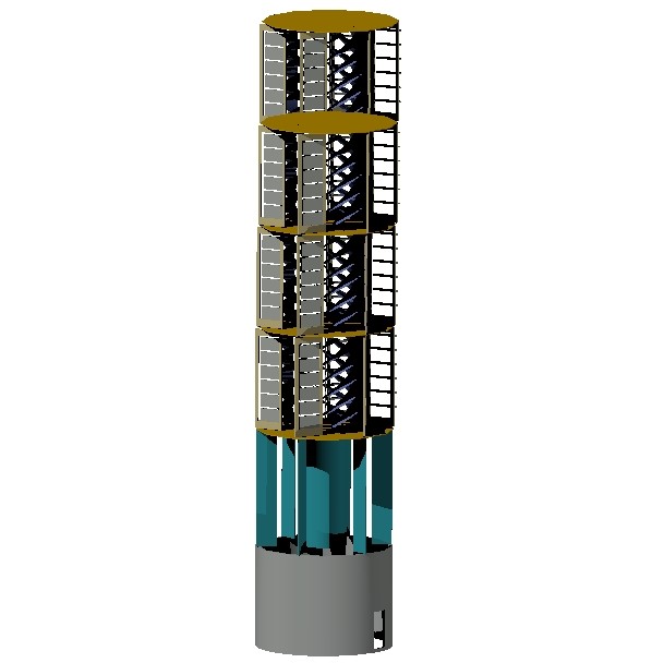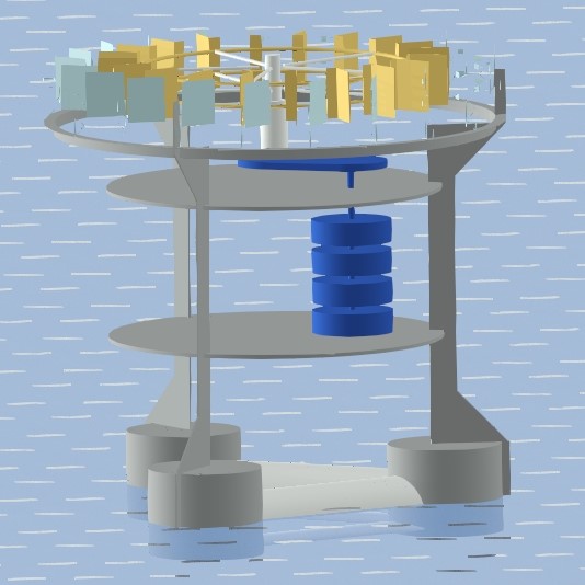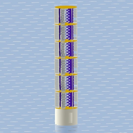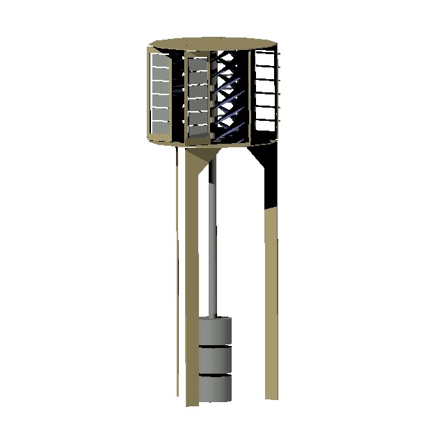 El cuerpo rotativo esta rodeado de unas piezas de forma que bajo el viento una parte del cuerpo rotativo esta tapado al viento y la otra parte esta abierta al viento, no hay otro aerogenerador de eje vertical mas eficiente.
