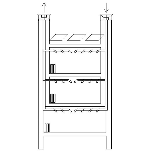 EDIFICIO AUTOSUFICIENTE, EL CO2 PESA MAS QUE EL AIRE, POR ELLO LAS BOCAS DE EXTRACCION ESTAN EN EL ENTORNO DEL SUELO.