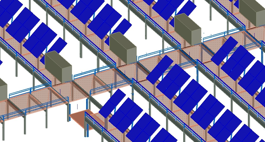 PANEL FOTOVOLTAICO VENTILADO Y CON BATERIAS COMPONIENDO UNA T DE MODO QUE LA BATERIA QUEDA A LA SOMBRA DE LA PLACA FOTOVOLTAICA.